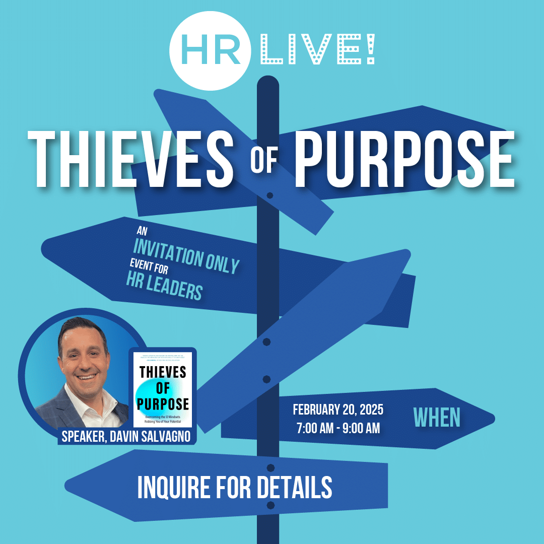 Our special guest speaker, David Salvagno, bestselling author and one of the leading voices on purpose and leadership. Join us for this powerful morning of networking, fresh perspectives, and actionable insights to help fuel the future of HR! We are excited to hear insights from his transformative guide, Thieves of Purpose.